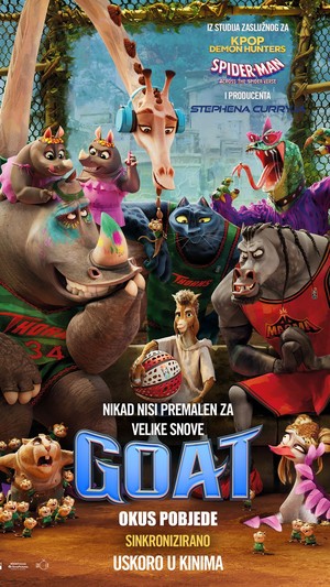 Iz Sony Pictures Animationa, studija koji stoji iza Spider-Mana™: Across the Spider-Verse i umjetnika zaslužnih za KPop Demon Hunters, stiže GOAT, originalna akcijska komedija smještena u svijet naseljen isključivo životinjama. Priča prati Willa, malog jarca s velikim snovima koji dobiva priliku života – pridružiti se profesionalcima i zaigrati rikomet, visokointenzivan, mješoviti sport s punim kontaktom, kojim dominiraju najbrži i najžešći životinjski sportaši na svijetu. Willov novi tim nije oduševljen što imaju malenog jarca u svojoj postavi, ali Will je odlučan revolucionirati ovaj sport i jednom zauvijek dokazati da “mali mogu biti veliki igrači!”