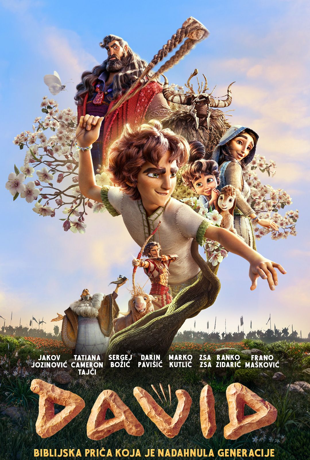 Kada se div Golijat uzdigne i zaprijeti njegovu narodu, mladi pastir — naoružan samo praćkom, nekoliko kamenčića i hrabrošću koju daje vjera — smjelo staje u obranu onih koje voli. Na putovanju koje slijedi otkrivaju se snaga odanosti, ljubavi i ustrajnosti, sve do velike bitke koja se ne vodi samo za krunu, nego i za dobro i budućnost cijelog kraljevstva.