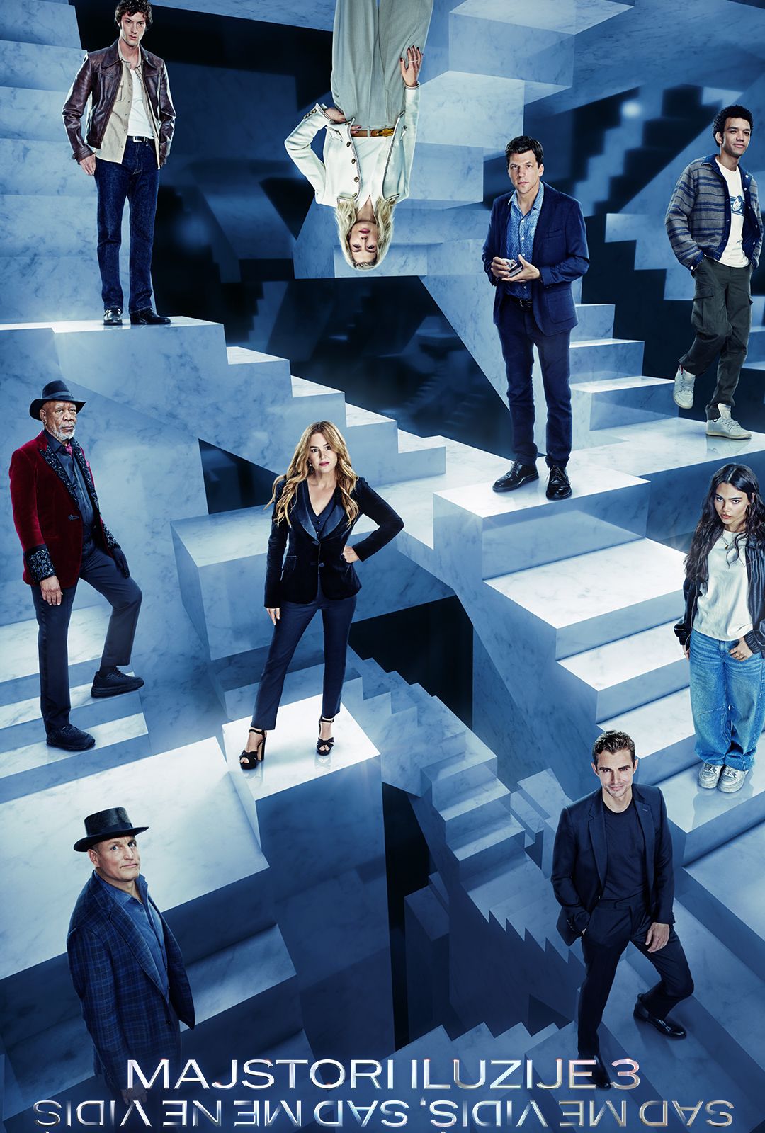 “SAD ME VIDIŠ, SAD ME NE VIDIŠ” – iluzija kakvu vaše oči još nisu doživjele! Četiri Jahača vraćaju se moćniji i spretniji nego ikad, a s njima stiže nova generacija iluzionista spremnih pomaknuti granice mogućega. Treći nastavak hit-sage o vrhunskim iluzionistima briše crtu između stvarnosti i obmane – svaki trik nadmašuje onaj prethodni, a najveće iznenađenje nikada nije ono koje očekujete. Zvjezdanu postavu predvode Jesse Eisenberg, Woody Harrelson, Dave Franco i Isla Fisher, uz pojačanja Justicea Smitha, Dominica Sesse i Ariane Greenblatt, te karizmatičnu Rosamund Pike i legendarnog Morgana Freemana. Pripremite se za adrenalinski vrtlog hipnotizirajućih varki – pravilo je samo jedno: nemojte treptati, jer ono što vidite možda nije ni djelić onoga što se doista događa!